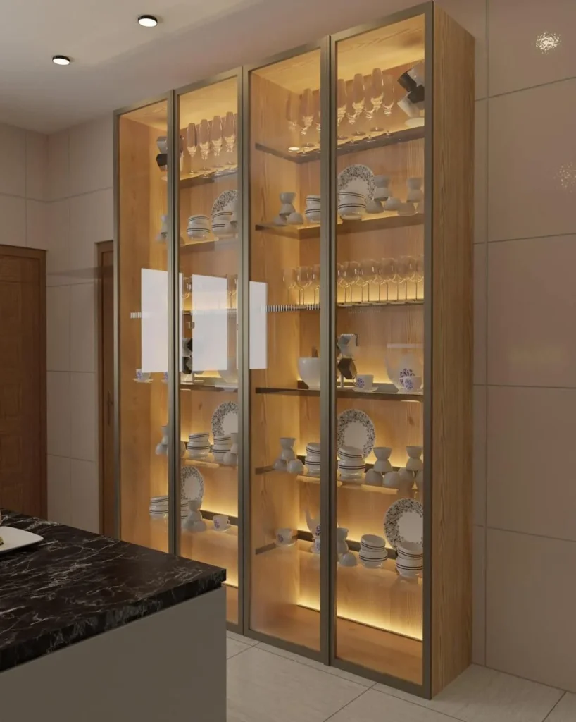Fully customizable with glass and closed storage options, crafted in premium-grade materials for elegance and functionality.