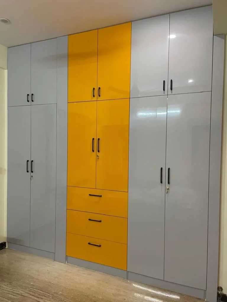 Sleek and modern, this floor-to-ceiling lacquered glass wardrobe offers a seamless blend of style and functionality.